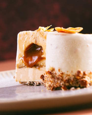 Com uma combinação surpreendente de texturas e perfis de sabor diferentes, o entremet caramel traz o melhor do caramelo, com um dulçor equilibrado deixando um gostinho de "quero mais".