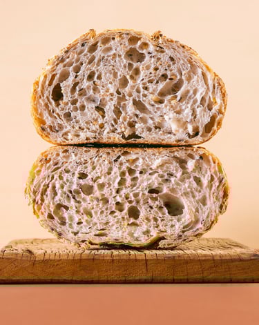 É um pão com alto teor de fibras, feito com parte de farinha integral, fermentação natural e um mix delicioso de grãos.